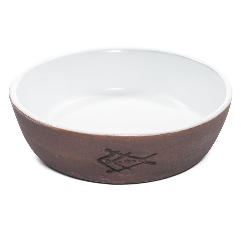 Керамическая миска "Емеля" выполнена в лучших традициях гончарного искусства и станет настоящим украшением "обеденной зоны" вашего питомца. Изделие имеет контрастную цветовую гамму - внешняя часть выполнена в коричневом цвете с нанесением оригинальной печати в виде рыбки, внутренняя часть миски - белоснежная, без нанесения. Стильная и функциональная миска для кошек и собак мелких пород идеально подойдет как для воды, так и для корма любой консистенции. Объем: 300мл. Размер: 137*137*40мм