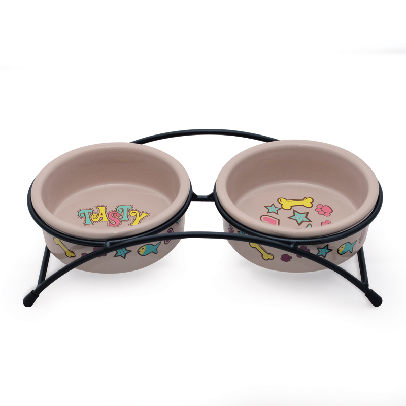 Этот функциональный комплект из двух универсальных круглых мисок на подставке выполнен из керамики высокого качества и отлично подходит для кошек и собак мелких пород. Такие миски идеальны как для воды, так и для корма разной консистенции. Изделие комфортно для питомца и легко моется под струей проточной воды с использованием моющих бытовых средств. А эффектный дизайн стимлизованной под ковку подставки позволит ей стать украшением любого интерьера. Цвет: бежевый. Размер: d дна - 112мм; d в верхней части - 125мм; высота - 45мм. Размер подставки - 280*135*65мм. Объем 2*0,25л.