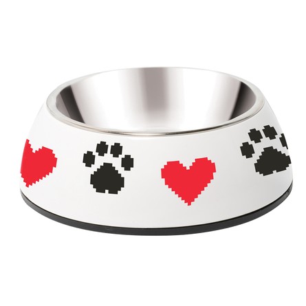 Миска из нержавеющей стали на пластиковой подставке "Сердечки" для кошек и собак небольших пород. Она идеально подходит как для воды, так и для корма разной консистенции. Изделие состоит из двух частей – миски из нержавеющей стали и подставки из из ударопрочного полимера, устойчивого к образованию царапин и трещин. Удобная съемная конструкция позволяет легко мыть миску после еды под струей проточной воды с использованием моющих бытовых средств. Прорезиненное основание обеспечивает максимальную устойчивость, препятствуя скольжению изделия во время использования, а оригинальный принт сделает такую миску украшением любого интерьера. Цвет изделия: серебристо-белый. Объем: 0,22л. Размеры: d145*45мм; диаметр метал. миски - 110мм.