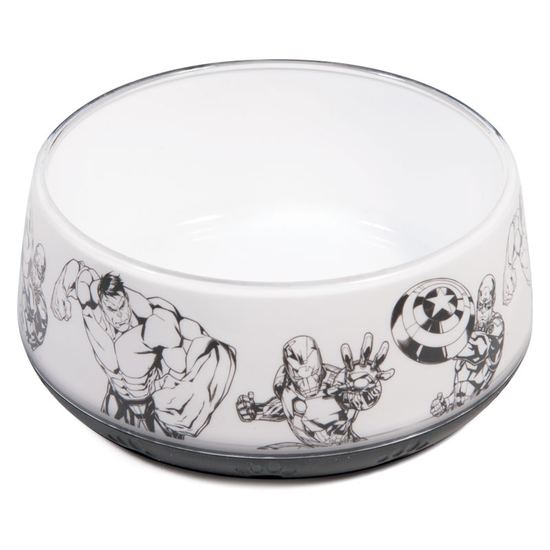 Эта стильная и функциональная миска отлично подходит для воды и корма любой консистенции. Выполненная из прочного пластика, она привлекает внимание выразительным принтом Marvel Мстители по внешнему борту. Функциональное противоскользящее дно изготовлено из термопластичной резины и декорировано изящными «лапками». Изделие комфортно для питомца и легко моется под струей проточной воды с использованием моющих бытовых средств. Цвет: белый. Размер изделия: d дна - 118мм; d верха - 105мм; высота - 50мм. Объем: 0,3л. Каждая миска упакована в индивидуальную коробку.