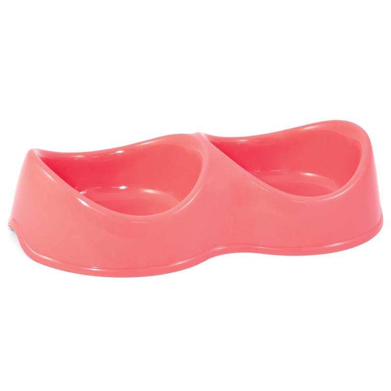 Миска пластиковая двойная "Бисквит", коралловая, 2*0,2л
