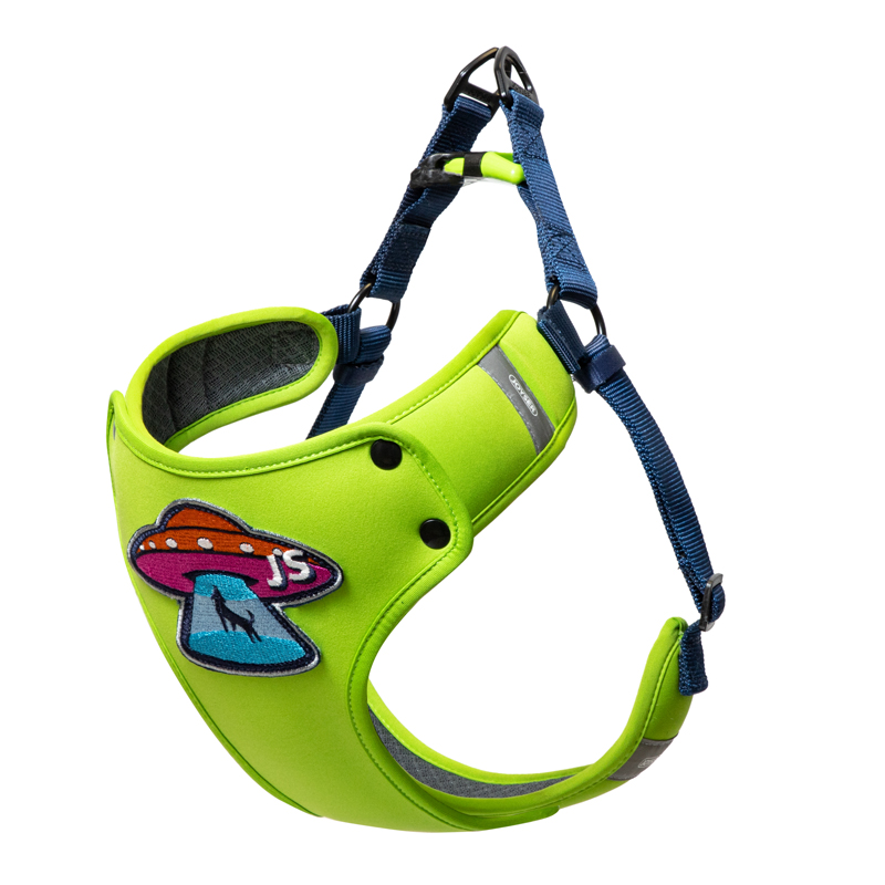 Два шеврона на кнопках JOYSER Patches (с вышивкой "НЛО" и "рок") для сменного передника шлейки для собак JOYSER Mood Harness Customized-Shirt.