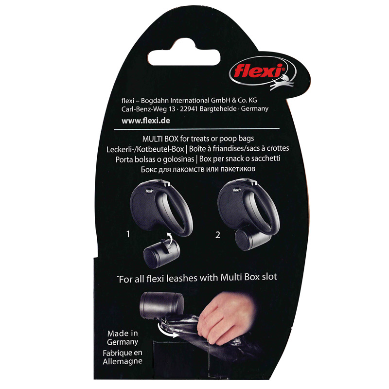Этот функциональный мультибокс – незаменимый аксессуар для владельцев четвероногих питомцев, который идеально подойдет для оригинальных поводков-рулеток коллекции Fun партнерского проекта TRIOL и flexi. В данных моделях этот компактный контейнер для лакомств или гигиенических пакетов удобно фиксируется прямо под ручкой рулетки, не доставляя дискомфорта во время прогулки и позволяя при этом всегда держать под рукой самое необходимое! Размеры изделия: 73х51х59мм. Цвет: черный.