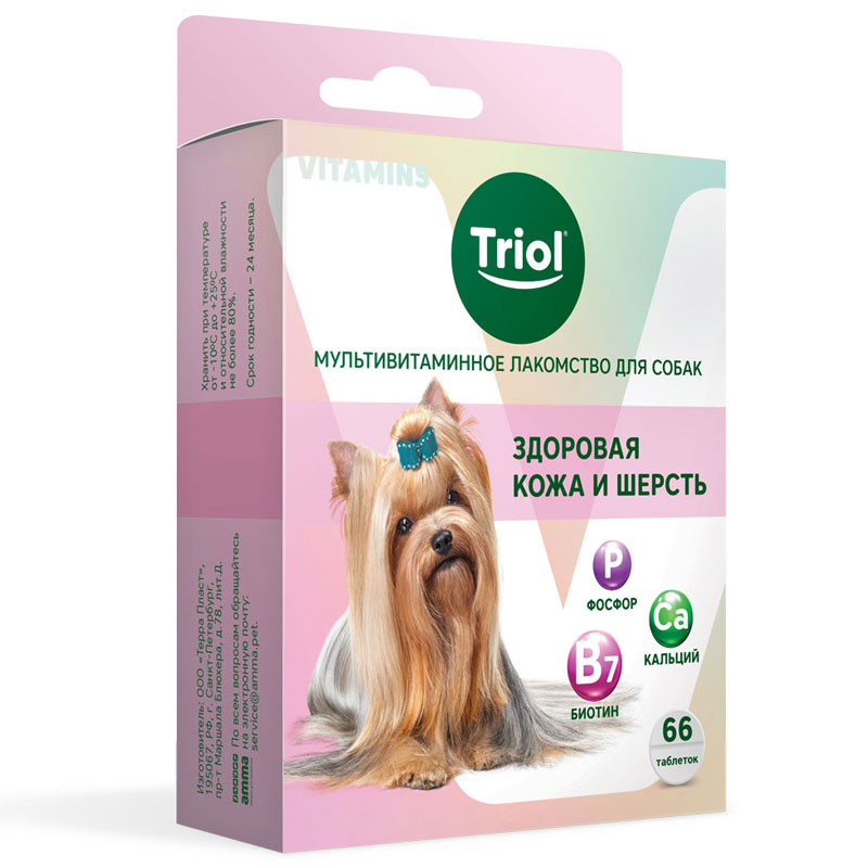 Мультивитаминное лакомство TRIOL – это источник полезных веществ, необходимых для укрепления иммунитета и обеспечения нормального обмена веществ вашей собаки. Основной рацион, как правило, содержит только базовый набор микроэлементов и не учитывает особенностей конкретного питомца, его предрасположенности к заболеваниям, а также увеличения потребности в витаминах во время стресса. Мультивитаминное лакомство TRIOL решает эти проблемы и эффективно заботится о здоровье вашего питомца. Биотин в составе лакомства положительно влияет на качество и структуру шерсти, противодействует ее чрезмерному выпадению, а также препятствует появлению перхоти и сухости кожи. Фосфор и кальций способствуют укреплению костной ткани и здоровью зубов. Лакомство содержит большой процент протеина – белка, который не вырабатывается в организме животного, но необходим для нормального течения физиологических и биохимических процессов в организме собаки. Масса нетто: 33г. В упаковке: 66 таблеток. Цвет: нежно-розовый.