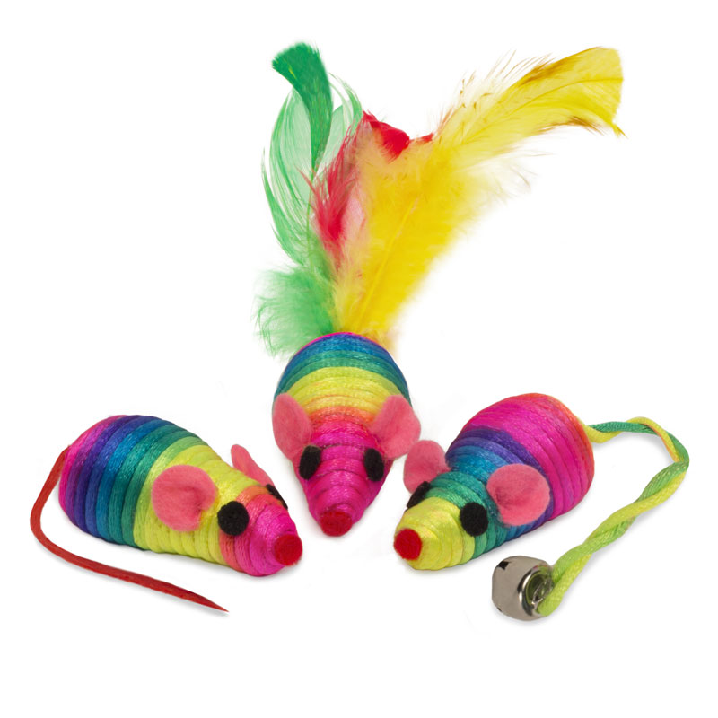 Набор игрушек для кошек "Активная игра 1" (3 радужные мыши 50мм), Triol