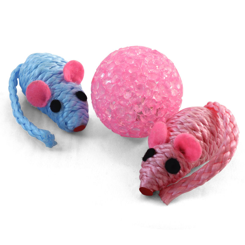 Этот набор из трех ярких игрушек - отличный вариант для активной и разнообразной игры с пушистыми питомцами. В комплект входят: мяч зернистый (d40мм) и две мыши из полиэстера (50мм).