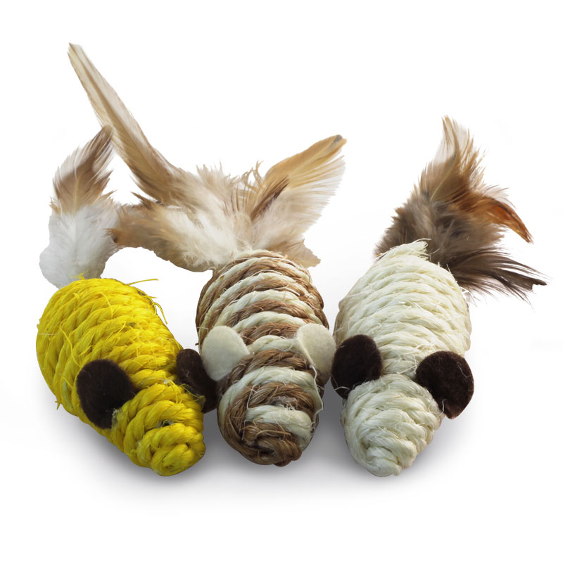 Набор из трех мышек - идеальное решение для активной игры с пушистым питомцем. Комплект включает три яркие мышки из сизаля размером 55*25*20мм каждая. С такими игрушками маленькие котята хорошо развиваются, а взрослые животные - держат себя в тонусе и оттачивают охотничьи навыки. Набор упакован в прозрачный пакет c клапаном.