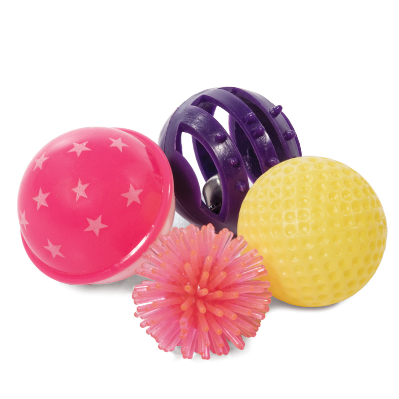 Этот набор из четырех ярких игрушек - отличный вариант для активной и разнообразной игры с пушистыми питомцами. В комплект входят: мяч- погремушка (d45мм), мяч с колокольчиком внутри (d45мм); мяч шуршик (d35мм), мяч для гольфа (40мм). С такими игрушками маленькие котята хорошо развиваются, а взрослые животные - держат себя в тонусе и оттачивают охотничьи навыки. Набор упакован в блистер.