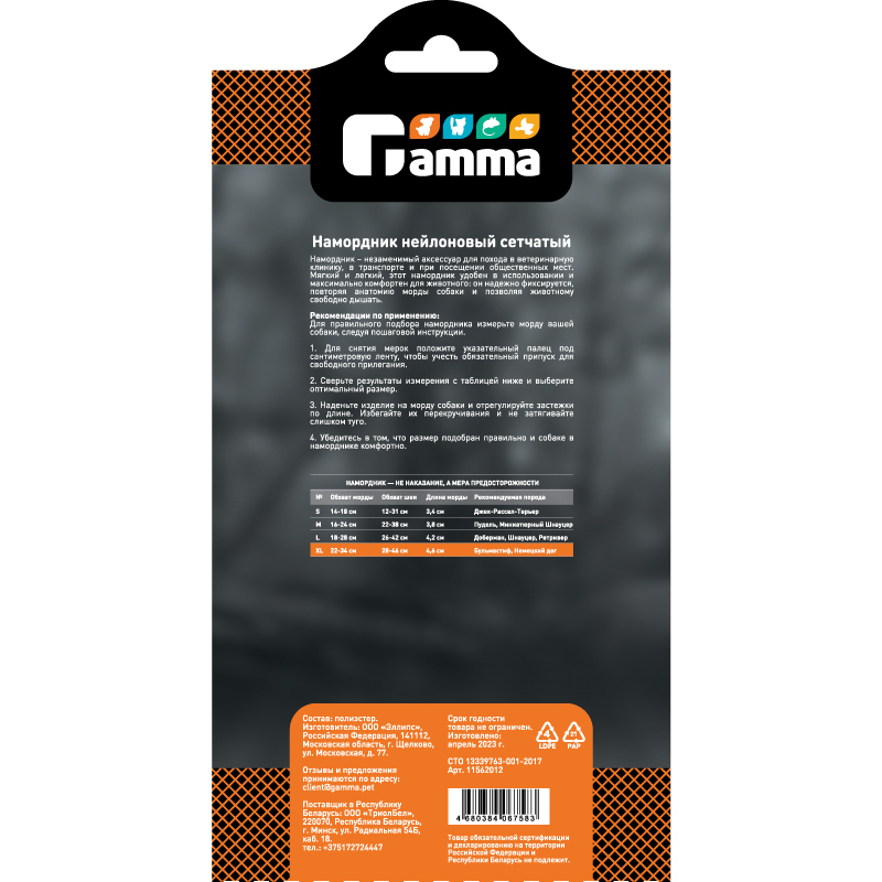 Намордник нейлоновый сетчатый XL, Gamma