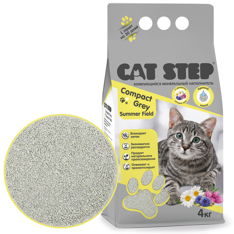 Наполнитель комкующийся минеральный CAT STEP Compact Grey Summer Field, 4 кг