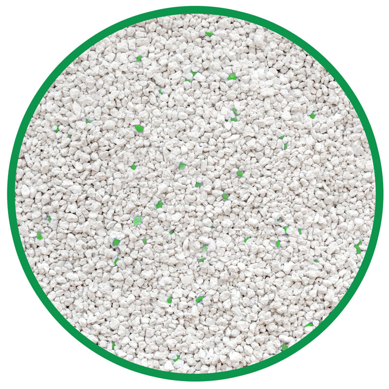 Микс гранул бентонита, активированного углем, и премиального белого бентонита способствует мгновенному формированию суперпрочных комочков при попадании жидкости.