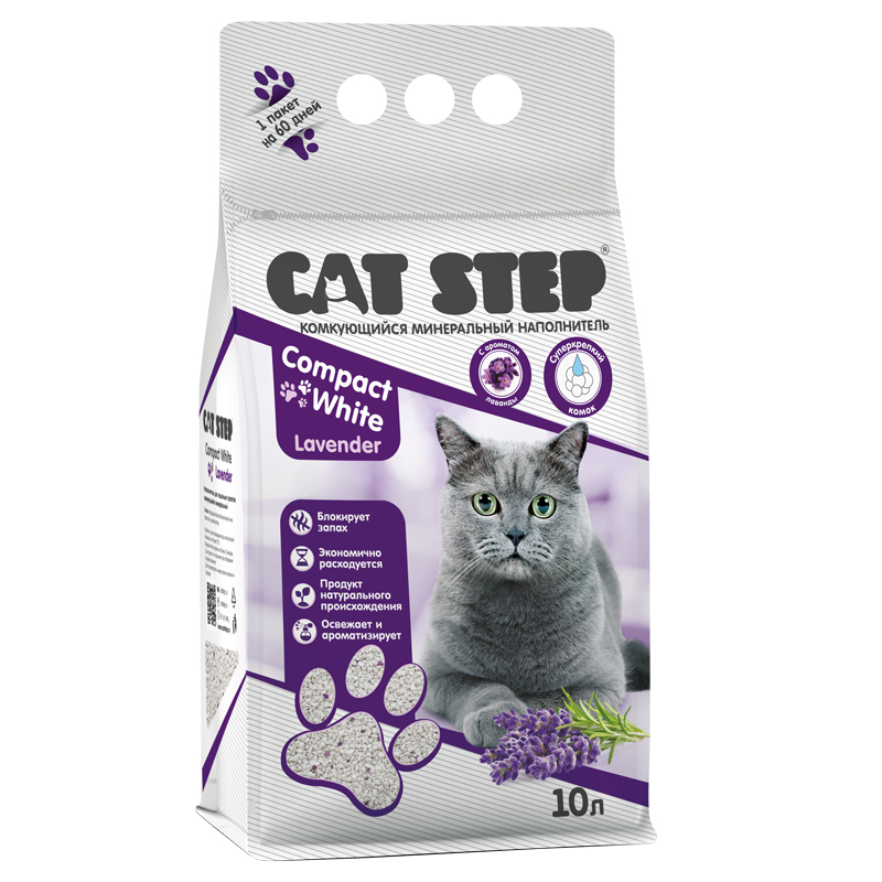 Наполнитель комкующийся минеральный CAT STEP Compact White Lavender, 10 л
