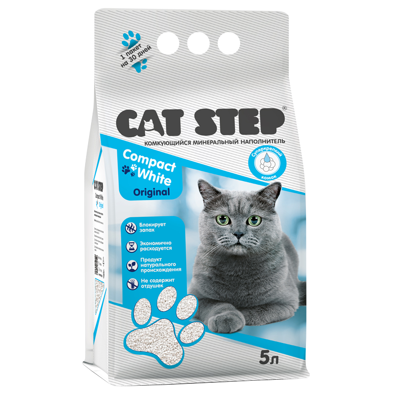 Гранулы наполнителя CAT STEP Compact White Original изготовлены из природной белой бентонитовой глины: при контакте с жидкостью они мгновенно формируют твердые комки, предотвращая образование грязи в лотке и эффективно удерживая запахи. Благодаря оптимальному размеру гранул комки получаются ровные и компактные, что позволяет экономично расходовать наполнитель, не утилизируя лишнего. Белая бентонитовая глина, которая добывается на севере Турции, не подвергается химическому воздействию, проходит только термообработку и несколько стадий очистки от пыли. Так как этот наполнитель не содержит парфюмерных отдушек, он идеально подойдет для питомцев и их хозяев с чувствительным обонянием. Заполните сухой и чистый лоток наполнителем CAT STEP Compact White Original слоем 5-7 см. Регулярно удаляйте твердые отходы и комочки, при необходимости досыпайте свежего наполнителя. Рекомендуем использовать лоток с высокими бортами без сетки. Не утилизировать в канализацию. Размер гранул: 0,5-2,5 мм. Объем: 5 л.