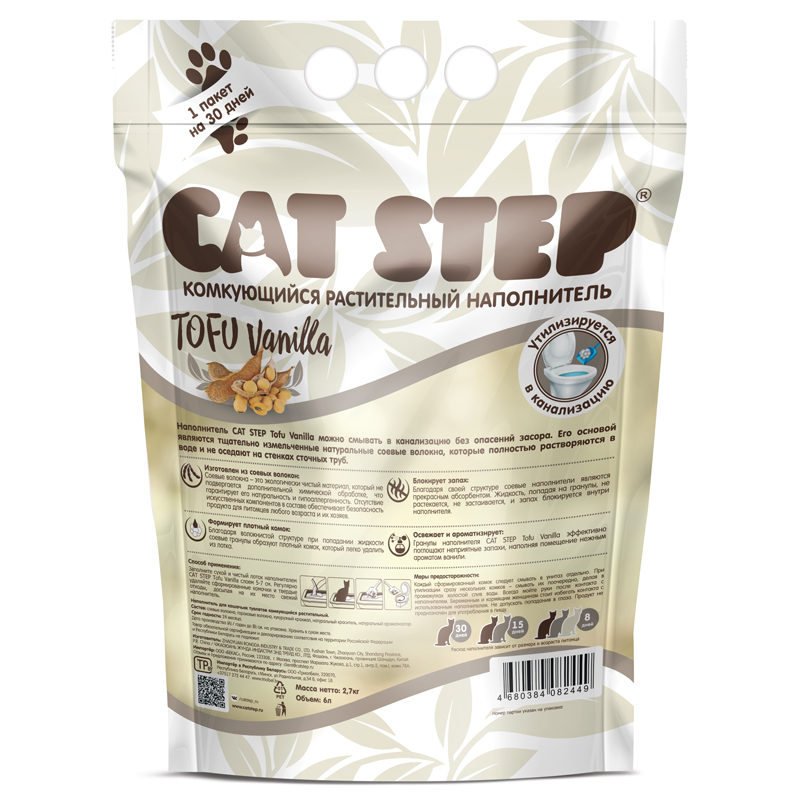 Растительные волокна, которые являются основой наполнителя CAT STEP Tofu Vanilla, легко растворяются в воде, поэтому его можно смывать в канализацию без опасений. Растительные волокна – это натуральный и экологически чистый материал, который не подвергается химической обработке, что гарантирует его гипоаллергенность и безопасность для питомцев и их хозяев. Благодаря волокнистой структуре при попадании жидкости растительные гранулы образуют плотный комок, который легко удалить из лотка. Жидкость, попадая на гранулы, не растекается, не застаивается, и запах блокируется внутри наполнителя. Легкий аромат ванили освежает помещение, а оригинальный оттенок наделяет продукт особой эстетикой. Заполните сухой и чистый лоток наполнителем CAT STEP Tofu Vanilla слоем 5-7 см. Регулярно удаляйте комочки и экскременты, досыпая на их место свежий наполнитель. Использованный наполнитель можно смывать в унитаз. Объем: 6 л.