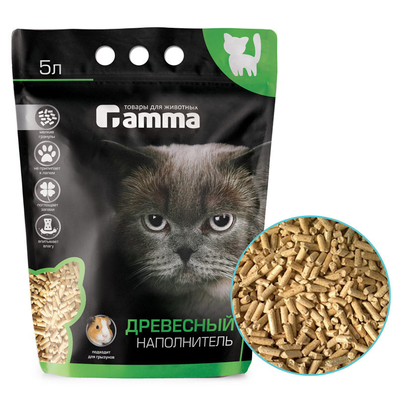 Наполнитель впитывающий древесный мелкие гранулы Gamma, 5л