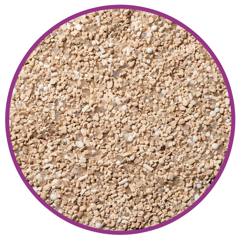 Микс гранул бентонита, активированного углем, и премиального белого бентонита способствует мгновенному формированию суперпрочных комочков при попадании жидкости.