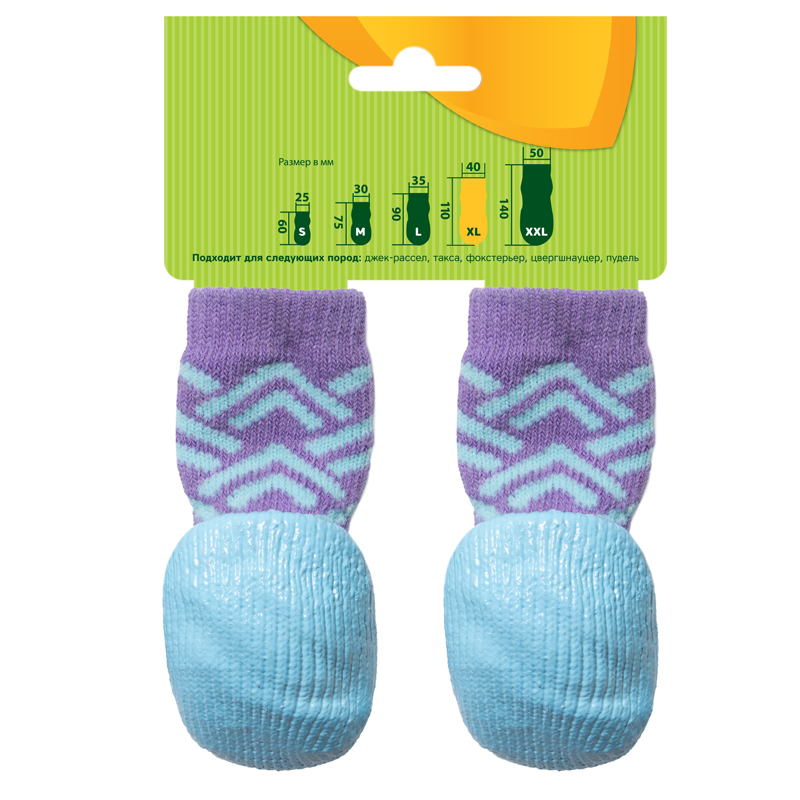 Комплект носков для собак "Орнамент" состоит из четырех изделий, выполненных преимущественно из хлопка с водостойким нитриловым покрытием на подошве. Нитриловое покрытие изготавливают из искусственно синтезированного каучука, пришедшего на смену натуральному латексу. Нитрил не вызывает аллергии, более прочный и износостойкий. Используя такие носочки на улице, Вы защитите лапы собаки от снега, слякоти, реагентов и порезов. В домашних условиях такие носочки ограждают интерьер от когтей любимца и, благодаря противоскользящему покрытию, позволяют четвероногому питомцу с комфортом передвигаться по паркету, кафелю и другим скользким покрытиям. Носочки легко одевать, а благодаря эластичным резинкам они не слезают с лап животного. Изделия просты в уходе и избавят вас от регулярного мытья лап собаке после прогулки. Цвет: сиренево-голубой. Размеры изделия: 40*110мм.
