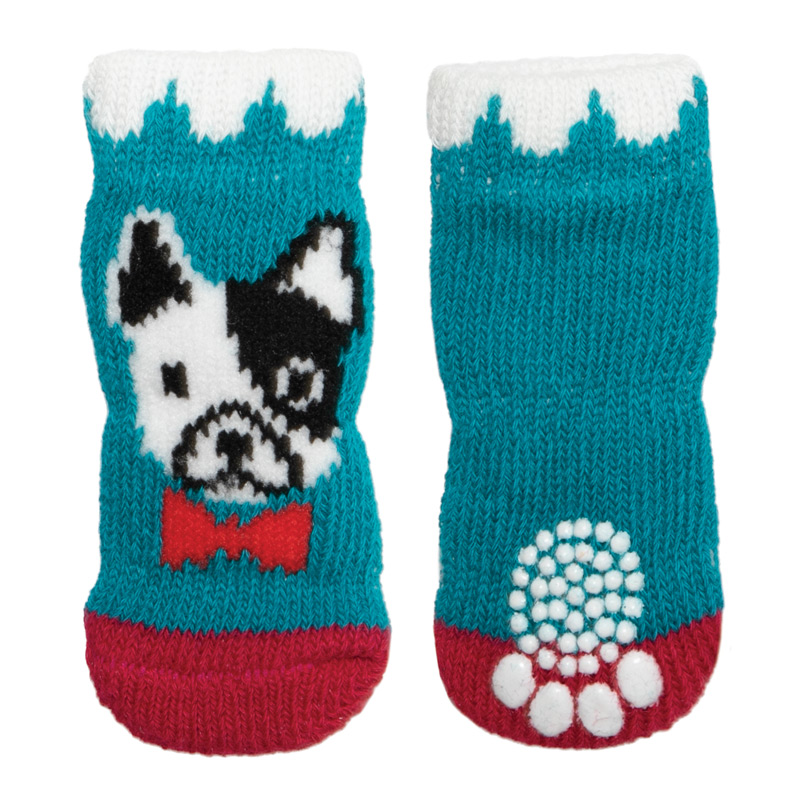 Домашние носочки с изображение головы собачки - не только стильный, но и полезный аксессуар для вашего питомца. Такие носочки ограждают интерьер от когтей любимца и, благодаря противоскользящему покрытию, позволяют четвероногому питомцу с комфортом передвигаться по паркету, кафелю и другим скользким покрытиям. Теплые, легкие и функциональные, эти носочки также отлично подойдут для согревания лапок питомца в зимний период, если их одеть под ботинки. Цвет: лазурный, серый. Размеры изделия: 30*75мм.