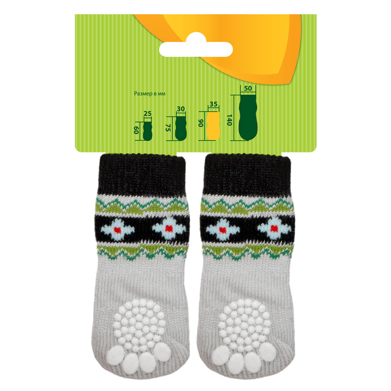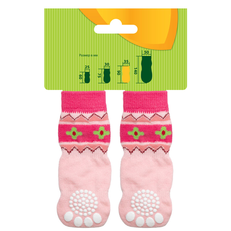 Домашние носочки серого и нежно-розового тонов с узорами - не только стильный, но и полезный аксессуар для вашего питомца. Такие носочки ограждают интерьер от когтей любимца и, благодаря противоскользящему покрытию, позволяют четвероногому питомцу с комфортом передвигаться по паркету, кафелю и другим скользким покрытиям. Теплые, легкие и функциональные, эти носочки также отлично подойдут для согревания лапок питомца в зимний период, если их одеть под ботинки. Цвет: серый, розовый. Размеры изделия: 35*90мм.
