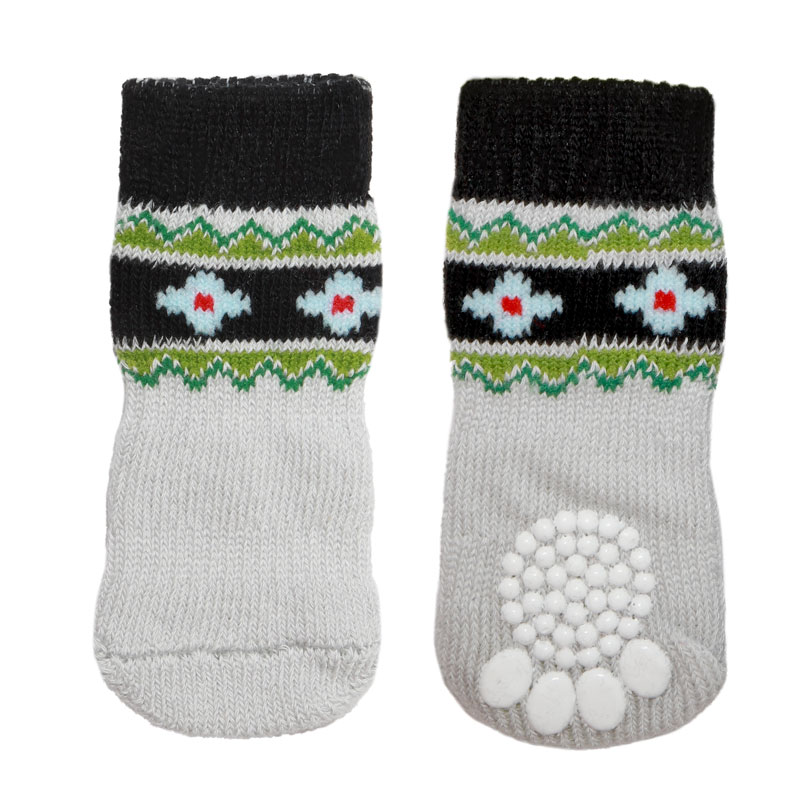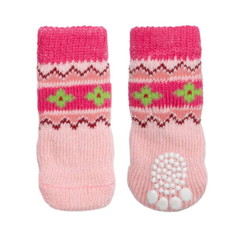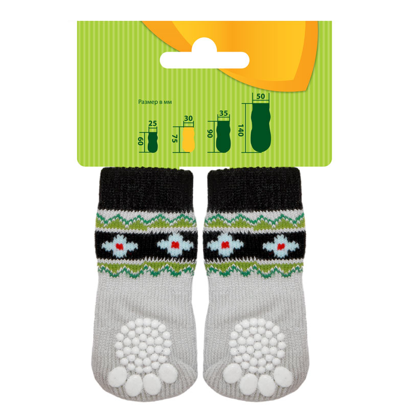 Домашние носочки серого и нежно-розового тонов с узорами - не только стильный, но и полезный аксессуар для вашего питомца. Такие носочки ограждают интерьер от когтей любимца и, благодаря противоскользящему покрытию, позволяют четвероногому питомцу с комфортом передвигаться по паркету, кафелю и другим скользким покрытиям. Теплые, легкие и функциональные, эти носочки также отлично подойдут для согревания лапок питомца в зимний период, если их одеть под ботинки. Цвет: серый, розовый. Размеры изделия: 30*75мм.