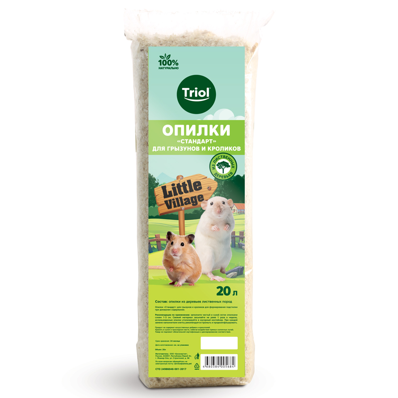 Опилки для грызунов и кроликов "Стандарт", 20л, серия LITTLE VILLAGE, Triol