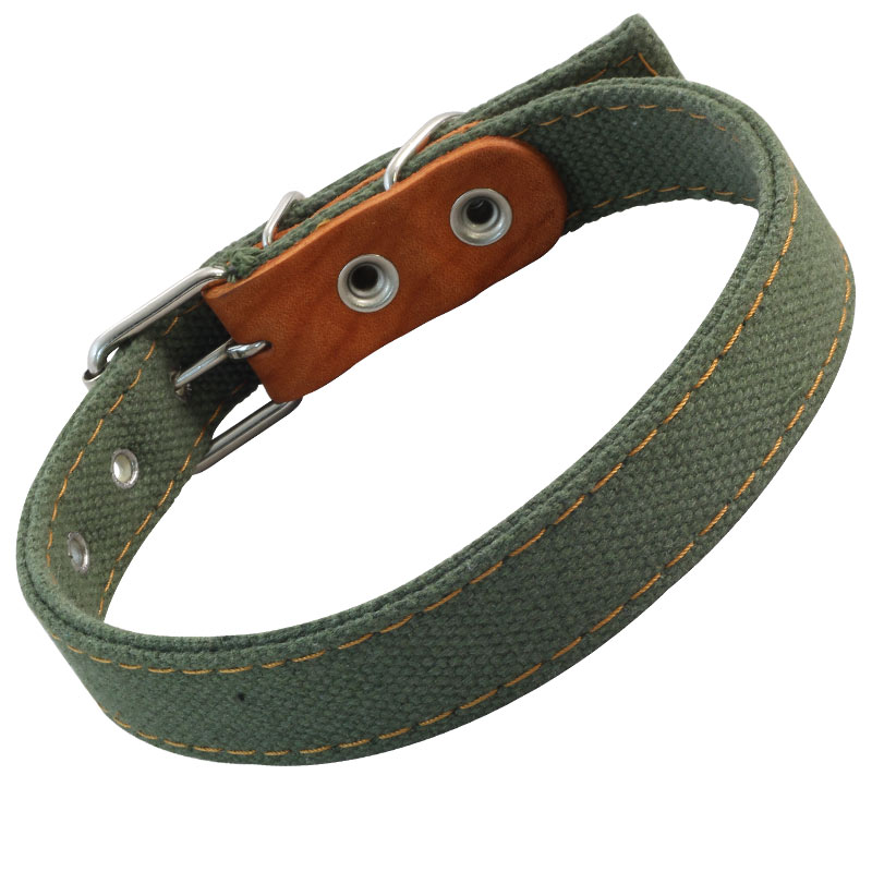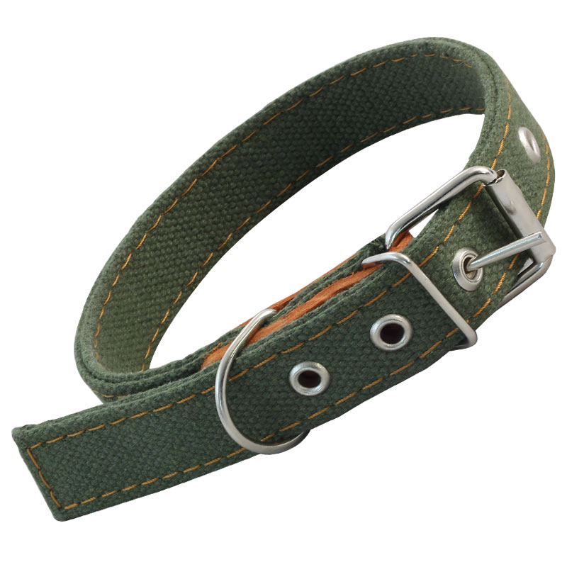 Двойной прошитый ошейник из брезента с кожаным подпряжником и прочным кольцом для крепления поводка или водилки. Такой ошейник отлично подойдет для собак небольших пород (размеры изделия 530х25 мм). Материал прочный и износостойкий, а длина изделия удобно регулируется. Цвет: хаки.