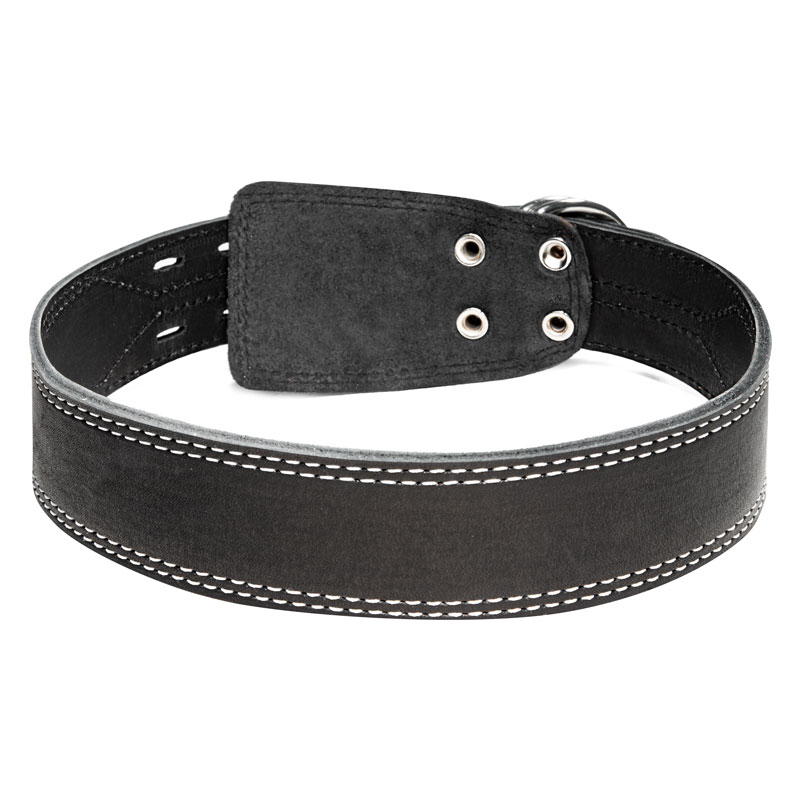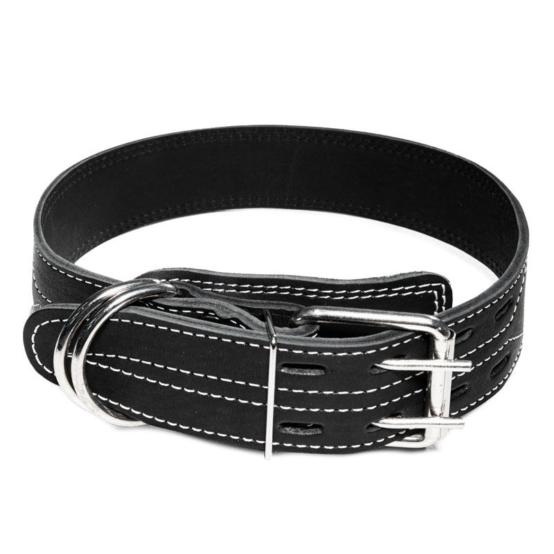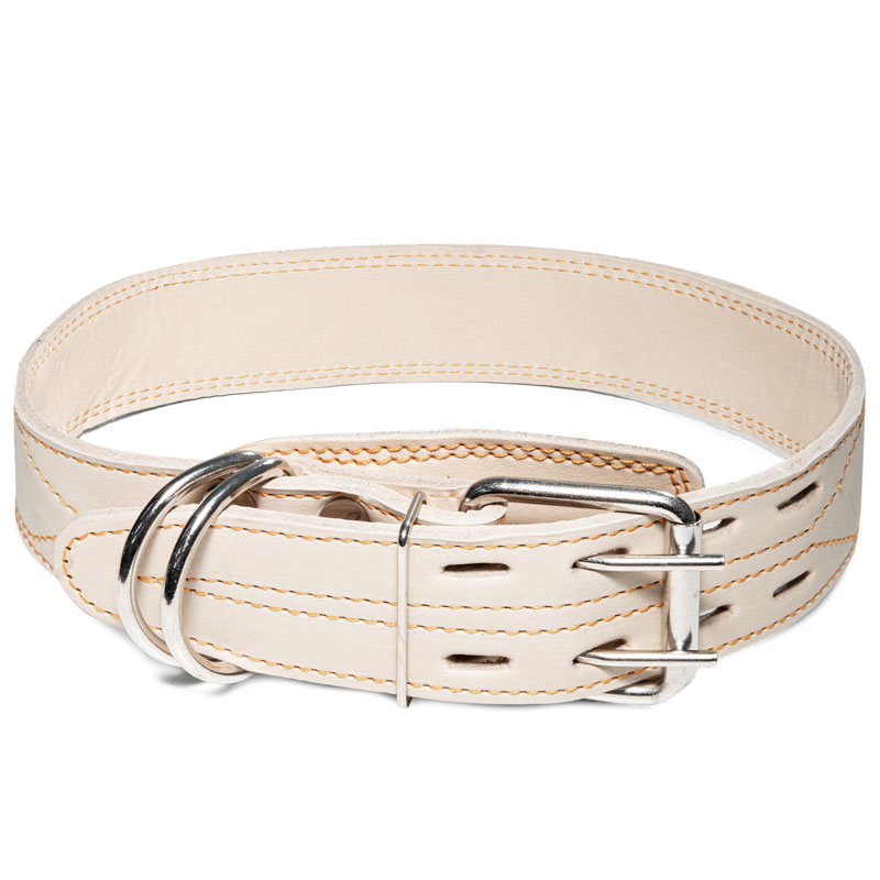 Кожаный двойной ошейник - незаменимый аксессуар для владельцев собак крупных пород. Изделие выполнено из мягкой, но прочной кожи высокого качества с использованием крепкой металлической фурнитуры. Предусмотренные отверстия позволяют удобно подгонять длину под индивидуальные параметры животного, а усиленное двойное металлическое кольцо отлично подойдет для прочного крепления карабина поводка, адресника или других аксессуаров. Размеры изделия: 810х45х6мм. Варианты расцветок: бежевый, коньяк, коричневый, черный.