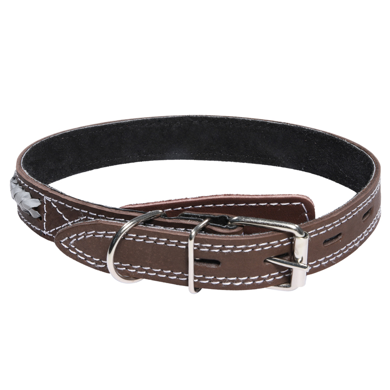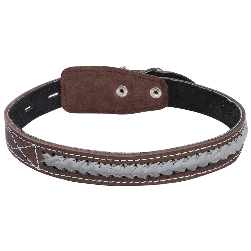 Ошейник двойной кожаный "Коса светоотражающая", 25*580мм, Gamma
