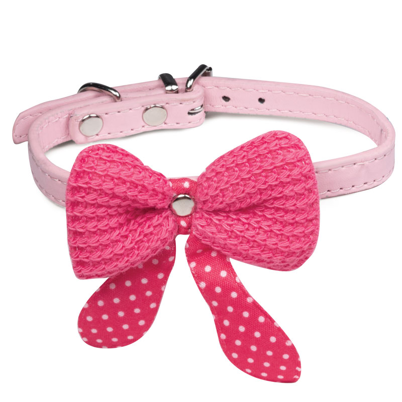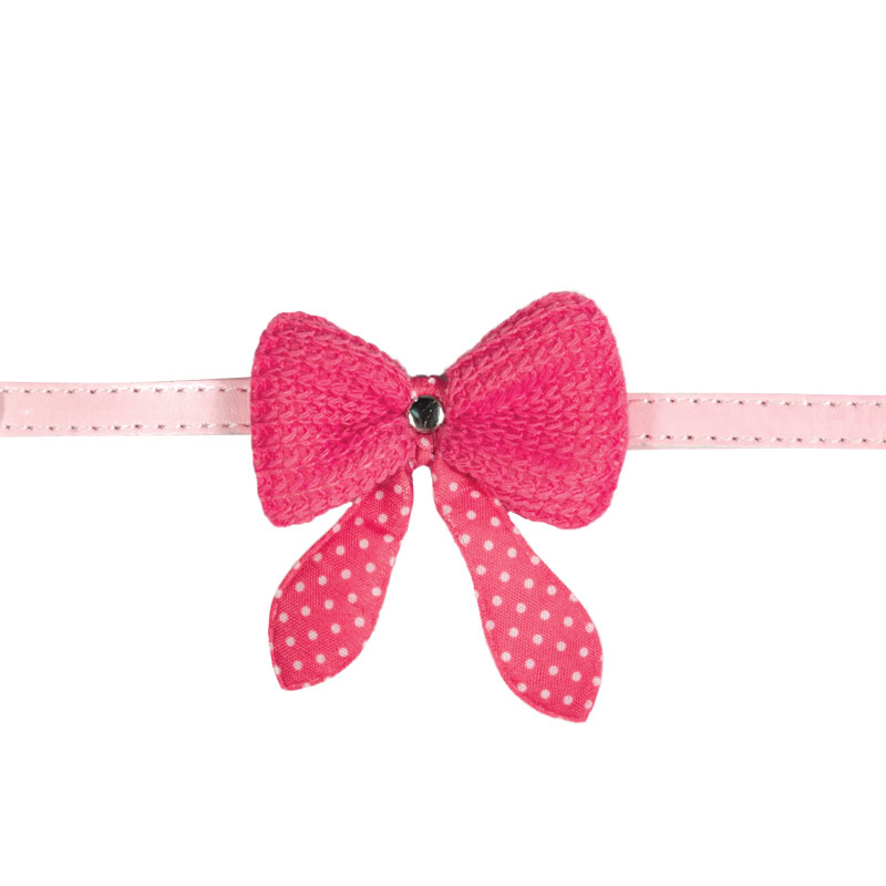 Ошейник из искусственной кожи с оригинальным дизайном в виде бантика с ушками - стильный и функциональный аксессуар для кошек и собак мелких пород. Изделие выполнено с использованием крепкой металлической фурнитуры и изящного декора. Длину изделия удобно подгонять под индивидуальные параметры животного, а прочное основание ошейника отлично подойдет для крепления поводка, адресника или других аксессуаров. Размеры изделия: 10*310мм. Цвет: розовый.