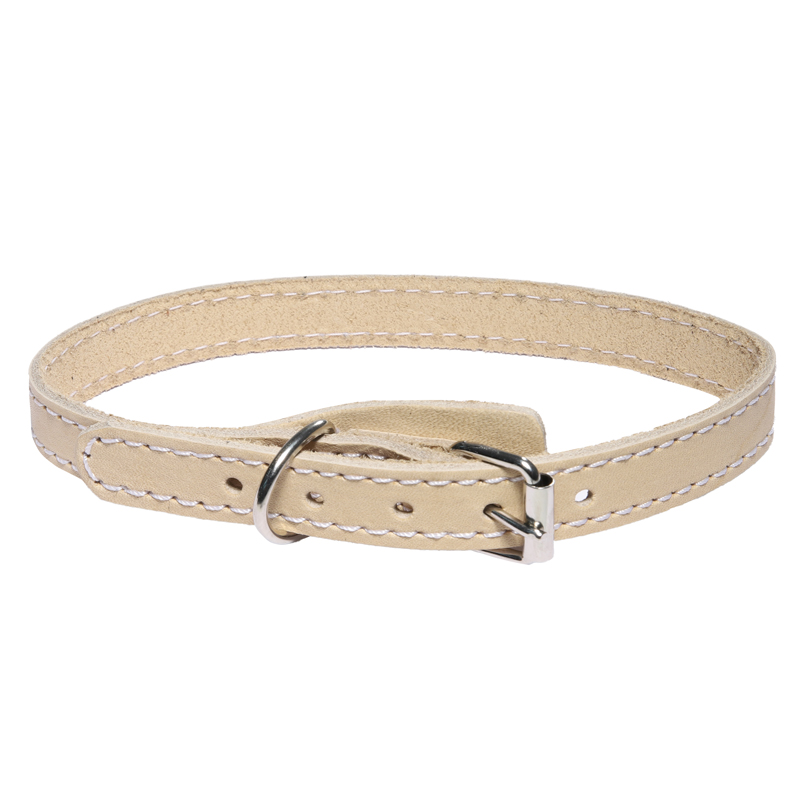Кожаный ошейник - незаменимый аксессуар для владельцев собак всех пород и возрастов. Одинарное изделие выполнено из мягкой, но прочной кожи высокого качества. Предусмотренные отверстия позволяют удобно подгонять длину под индивидуальные параметры животного, а функциональное металлическое кольцо отлично подойдет для крепления карабина поводка, адресника или других аксессуаров. Размеры изделия: 410*15*3мм. Варианты расцветок: бежевый, коньяк, коричневый, черный.