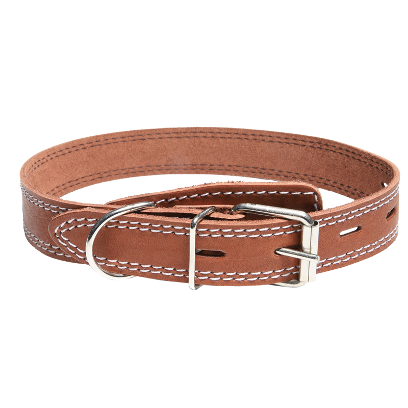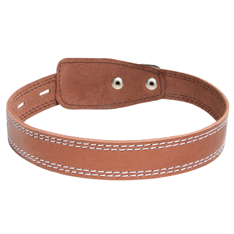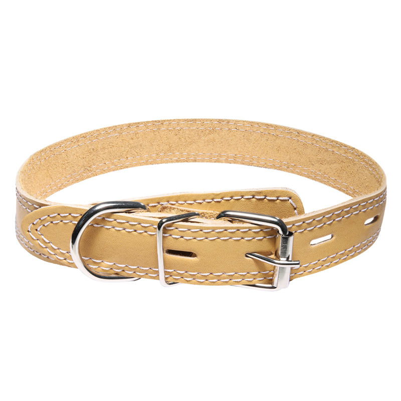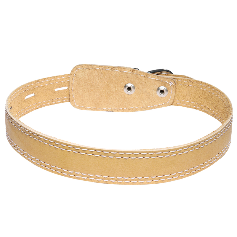 Кожаный одинарный ошейник - незаменимый аксессуар для владельцев собак всех пород и возрастов. Изделие выполнено из мягкой, но прочной кожи высокого качества с использованием крепкой металлической фурнитуры. Предусмотренные отверстия позволяют удобно подгонять длину под индивидуальные параметры животного, а функциональное металлическое кольцо отлично подойдет для крепления карабина поводка, адресника или других аксессуаров. Размеры изделия: 580*25*4мм. Варианты расцветок: бежевый, коньяк, коричневый, черный.