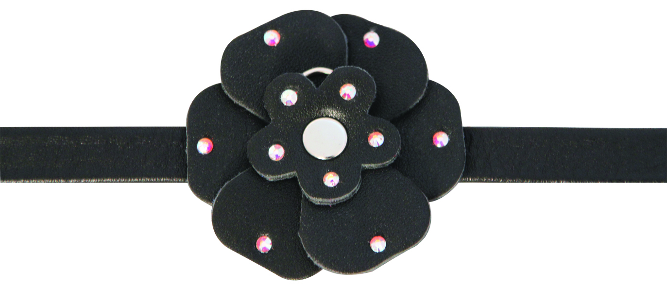 Ошейник-мини двойной со стразами кожаный "Цветок" L, 12*300мм, Gamma