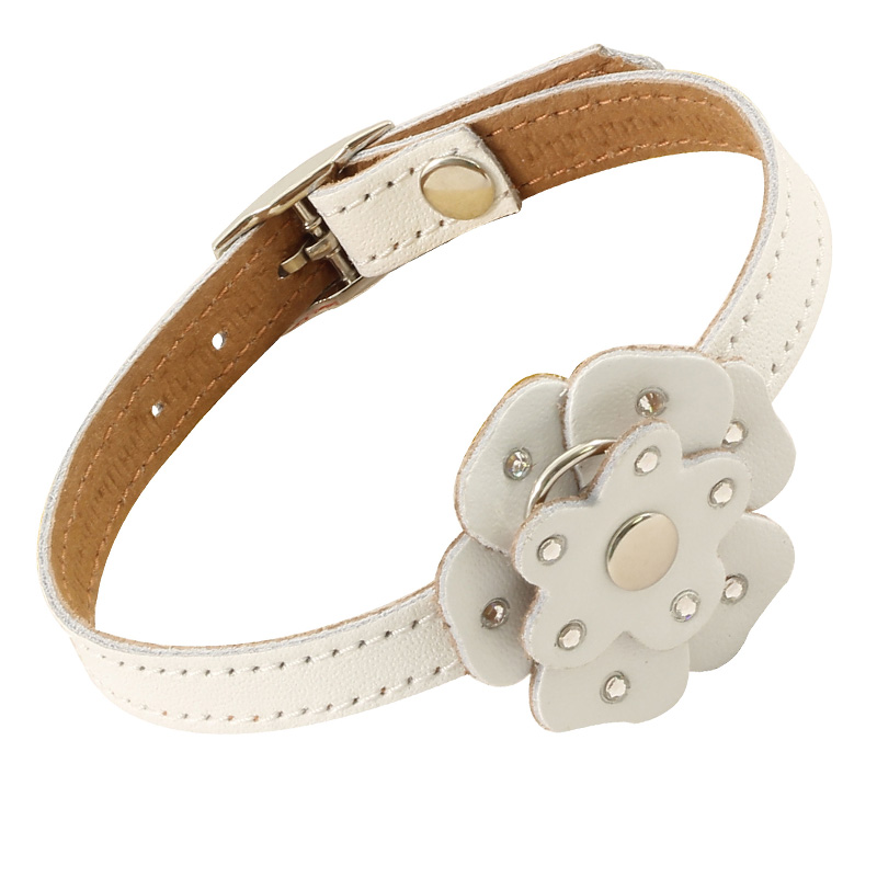 Оригинальный кожаный ошейник - стильный и функциональный аксессуар для небольших собак. Двухслойное изделие выполнено из мягкой, но прочной цветной кожи высокого качества с использованием крепкой металлической фурнитуры и оригинального цветочного декора. Длину изделия удобно подгонять под индивидуальные параметры животного, а прочное основание ошейника отлично подойдет для крепления поводка, адресника или других аксессуаров. Размеры изделия: 300*12*2мм. Варианты расцветок: красный, синий, коричневый, черный.