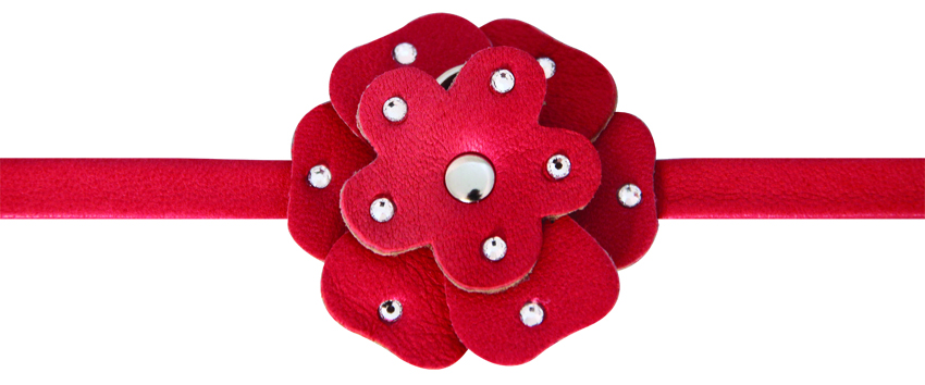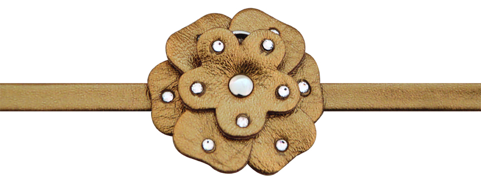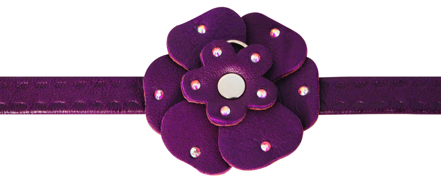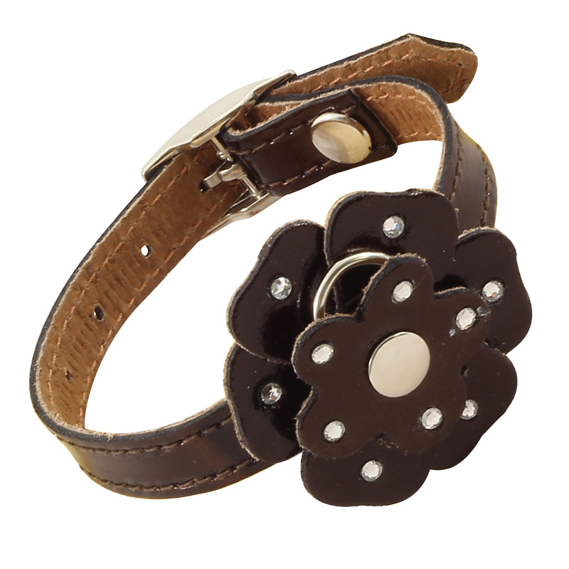 Ошейник-мини двойной со стразами кожаный "Цветок" S, 12*200мм, Gamma