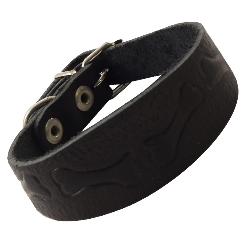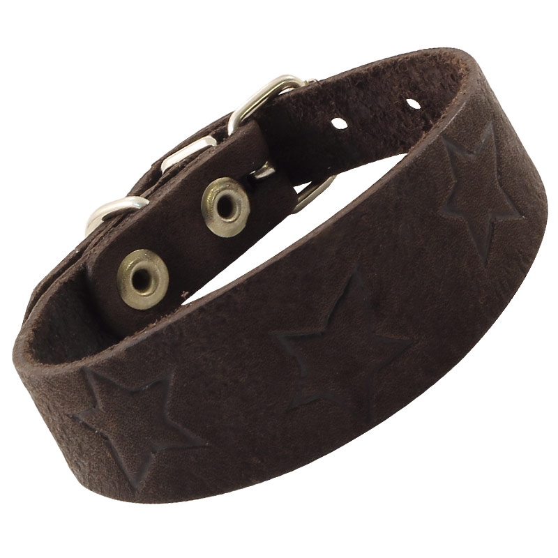 Ошейник-мини одинарный c тиснением кожаный "Узор", 33*300мм, Gamma