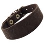 Стильный кожаный ошейник - оригинальный и функциональный аксессуар среднего размера. Однослойное изделие выполнено из мягкой, но прочной цветной кожи высокого качества с использованием крепкой металлической фурнитуры и оригинальным тиснением. Длину изделия удобно подгонять под индивидуальные параметры животного, а прочное основание ошейника отлично подойдет для крепления поводка, адресника или других аксессуаров. Размер изделия: 300*33*2мм. Варианты расцветок: коньяк, коричневый, черный.