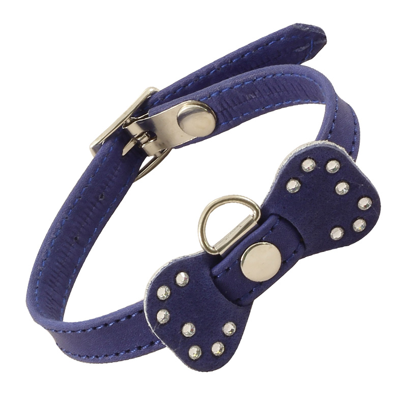 Ошейник-мини со стразами кожаный «Бантик», 12*250мм, Gamma