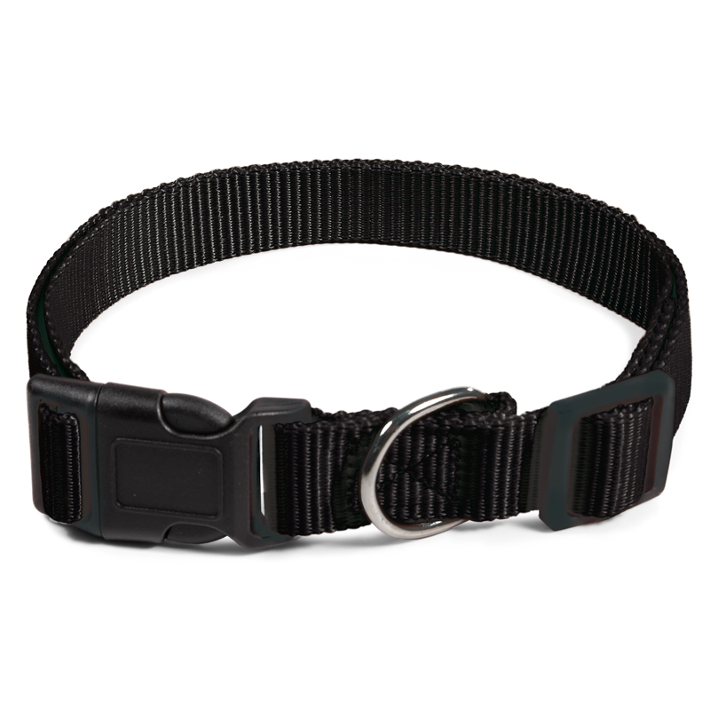 Регулируемый ошейник из нейлона - это полезный и функциональный аксессуар для четвероногих питомцев. Изделие имеет сбоку от застежки удобное кольцо для крепления поводка. Размеры изделия регулируемой длины: 400-650х25мм (размер XL). Цвет: черный.