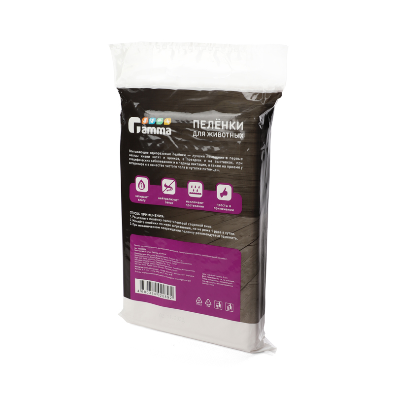 Подстилки впитывающие для домашних животных содержат угольный абсорбент, изготовленный из бамбука, который отлично впитывает жидкость, оставляя поверхность сухой, и надежно удерживает запах. Черный цвет подстилок делает их не только практичным аксессуаром, но и оригинальным дополнением любого интерьера: он отлично скрывает пятна и надолго сохраняет эстетичный внешний вид.
