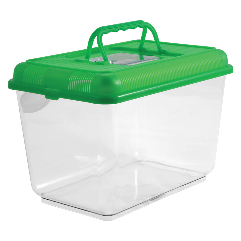 Террариум-переноска для мелких животных. Пластиковый контейнер для временного содержания мелких животных (транспортировка, карантин). Легкий в использовании, пластиковый, универсальный террариум снабжен ручкой для удобства переноски. Идеально подходит для: грызунов, рептилий, рыб, земноводных, паукообразных, насекомых и др. Прозрачная пластиковая откидная дверца в крышке. Пластиковые детали легко моются и дезинфицируются. Цвет: синий, красный, желтый, зеленый. Объем: 1,4л. Размер: 185*118*135мм.