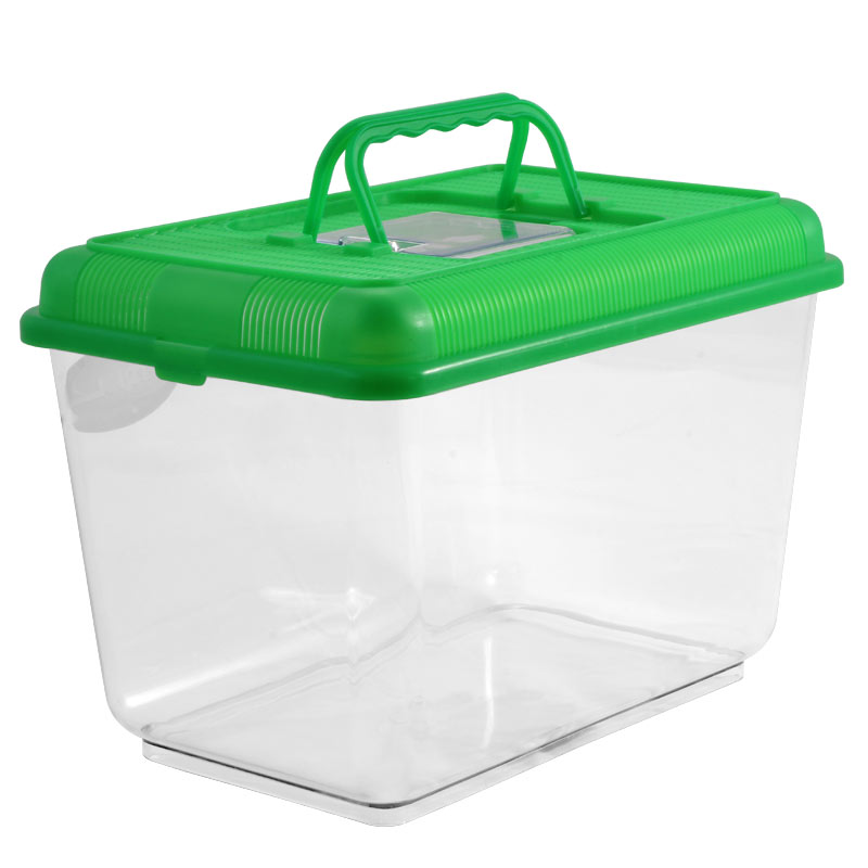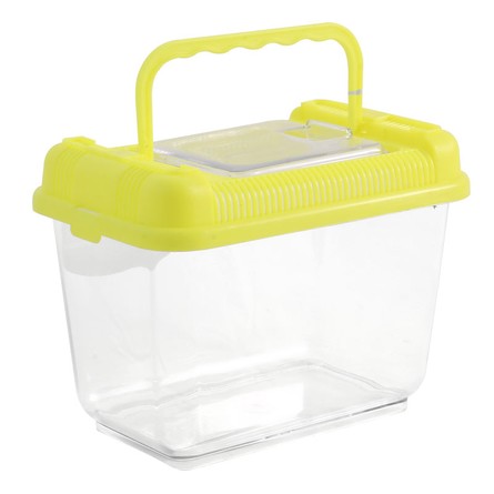 Террариум-переноска для мелких животных. Пластиковый контейнер для временного содержания мелких животных (транспортировка, карантин). Легкий в использовании, пластиковый, универсальный террариум снабжен ручкой для удобства переноски. Идеально подходит для: грызунов, рептилий, рыб, земноводных, паукообразных, насекомых и др. Прозрачная пластиковая откидная дверца в крышке. Пластиковые детали легко моются и дезинфицируются. Цвет: синий, красный, желтый, зеленый. Объем: 1,4л. Размер: 185*118*135мм.