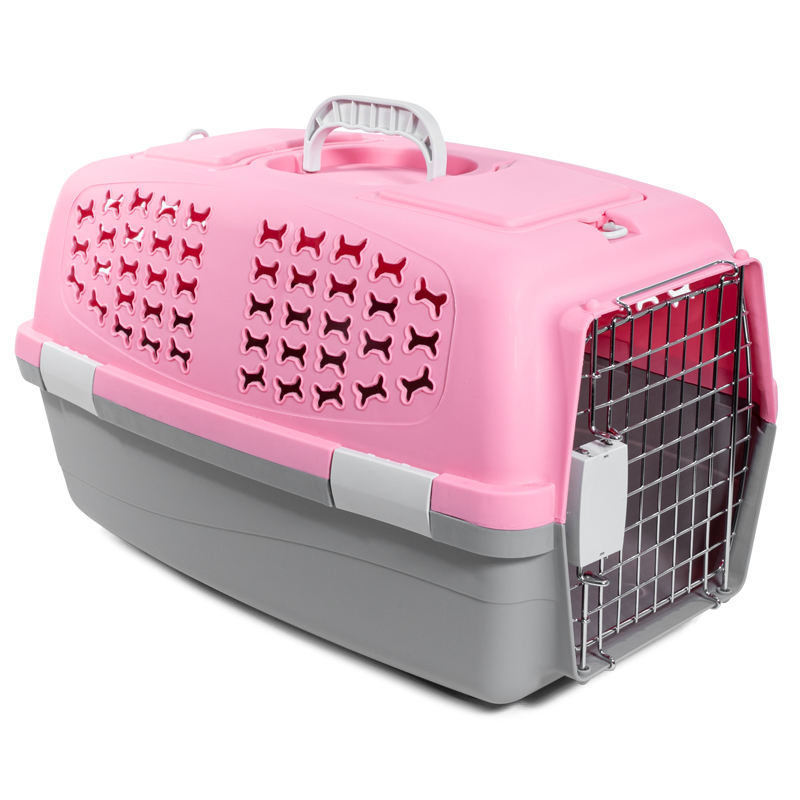 Переноска для животных c металлической дверцей "Косточки" S, розовая, 480*300*280мм, серия TRAVEL, Triol