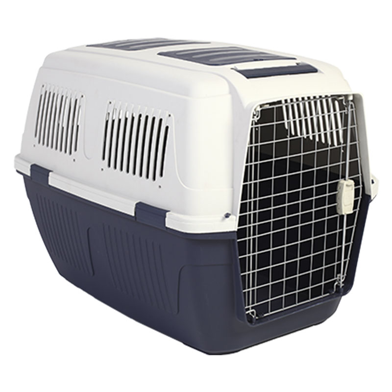 Эта прочная и максимально комфортная для питомца переноска выполнена из высококачественного пластика. Изделие снабжено надежными креплениями, в комплекте миска, которая крепится на дверь. Колеса в комплектацию изделия не входят и приобретаются отдельно. Металлическая дверца переноски плотно запирается, вентиляционные решетки позволяют питомцу свободно дышать, а крепкая и удобная пластиковая ручка максимально упрощает транспортировку животного. Переноска соответствует требованиям Международной Ассоциации Воздушного Транспорта (IATA) и подходит для авиаперевозок. Подходит для собак таких пород, как бультерьер, акита, такса, французский бульдог. Цвет: темно-синий, темно-серый. Размер изделия: 710х530х520мм. Высота с колесами - 580мм. Максимально допустимая нагрузка: 25кг.