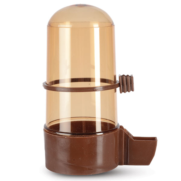 Эта удобная и функциональная поилка с узким носиком идеально подходит для мелких и средних птиц. При помощи специального крепления она легко устанавливается на прутьях клетки. Просто наполните ее чистой водой и закрепите при помощи держателя. Изделие удобно в эксплуатации и выполнено из прочного нетоксичного пластика, поэтому абсолютно безвредно для питомцев. Размер: 150 (высота); d70; 105мм (ширина). Объем: 320мл. Цвет: коричневый, белый.