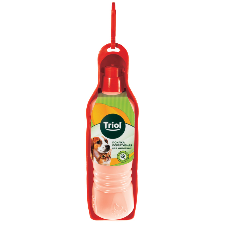 Поилка портативная для животных "Прогулка", красная, 750мл, 290*75*70мм, Triol