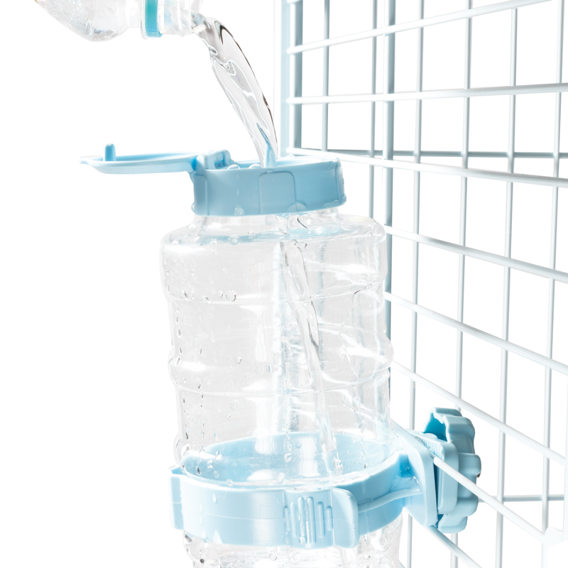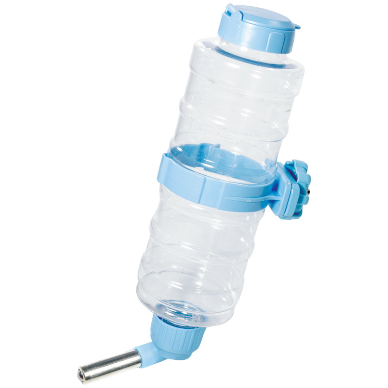 Удобная и практичная поилка для животных - всегда актуальный аксессуар для владельцев собак, кошек и крупных грызунов. При помощи специального крепления изделие легко установить на прутьях клетки или вольера, а металлический наконечник с шариком сделает процесс питья максимально комфортным для питомца. Благодаря крышке в поилку удобно наливать воду, не снимая ее с клетки. Изделие легко разбирается, что обеспечивает простой уход – каждую деталь можно промыть отдельно. Цвет изделия: голубой. Объем поилки: 950 мл. Размер изделия: 120*90*300мм (диаметр бутылки 80мм).