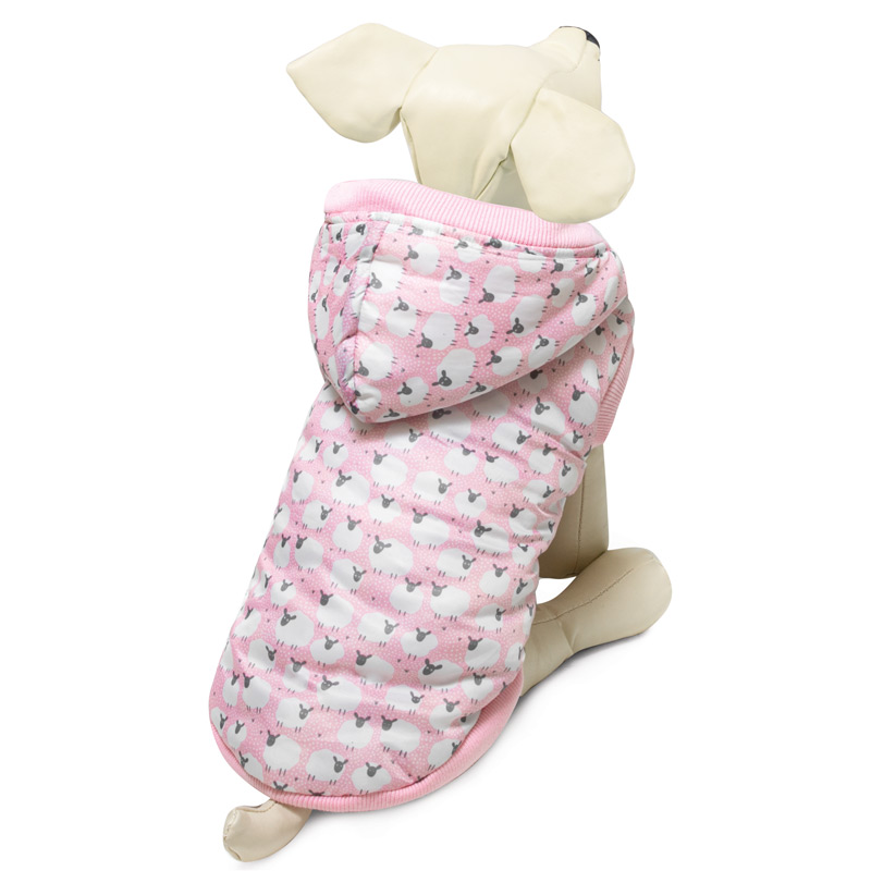 Утепленная попона "Барашки" с капюшоном для комфортных прогулок даже в самую ненастную погоду. Попона украшена оригинальным принтом на спине. Застегивается при помощи трех заклепок на животе. Подкладка: плюш.