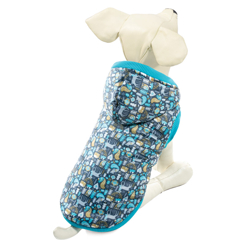 Утепленная попона "Зимняя сказка" с капюшоном для комфортных прогулок даже в самую ненастную погоду. Попона украшена оригинальным принтом на спине. Застегивается при помощи трех заклепок на животе. Подкладка: флис.