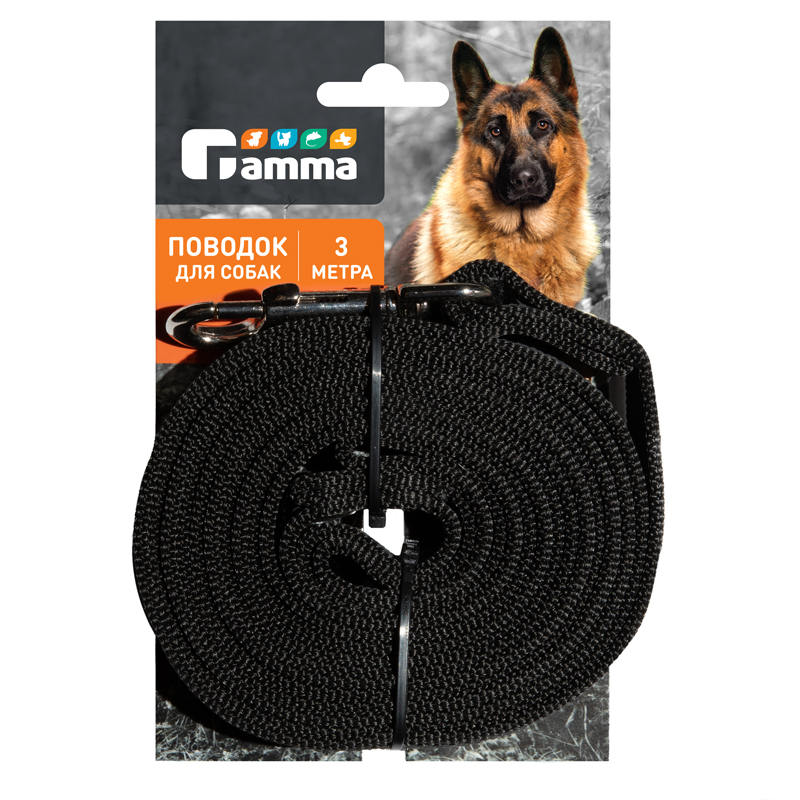 Поводок капроновый для собак с латексной нитью "Апорт", черный, 20*3000мм