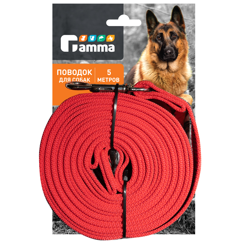 Поводок капроновый для собак с латексной нитью "Апорт", красный, 20*5000мм
